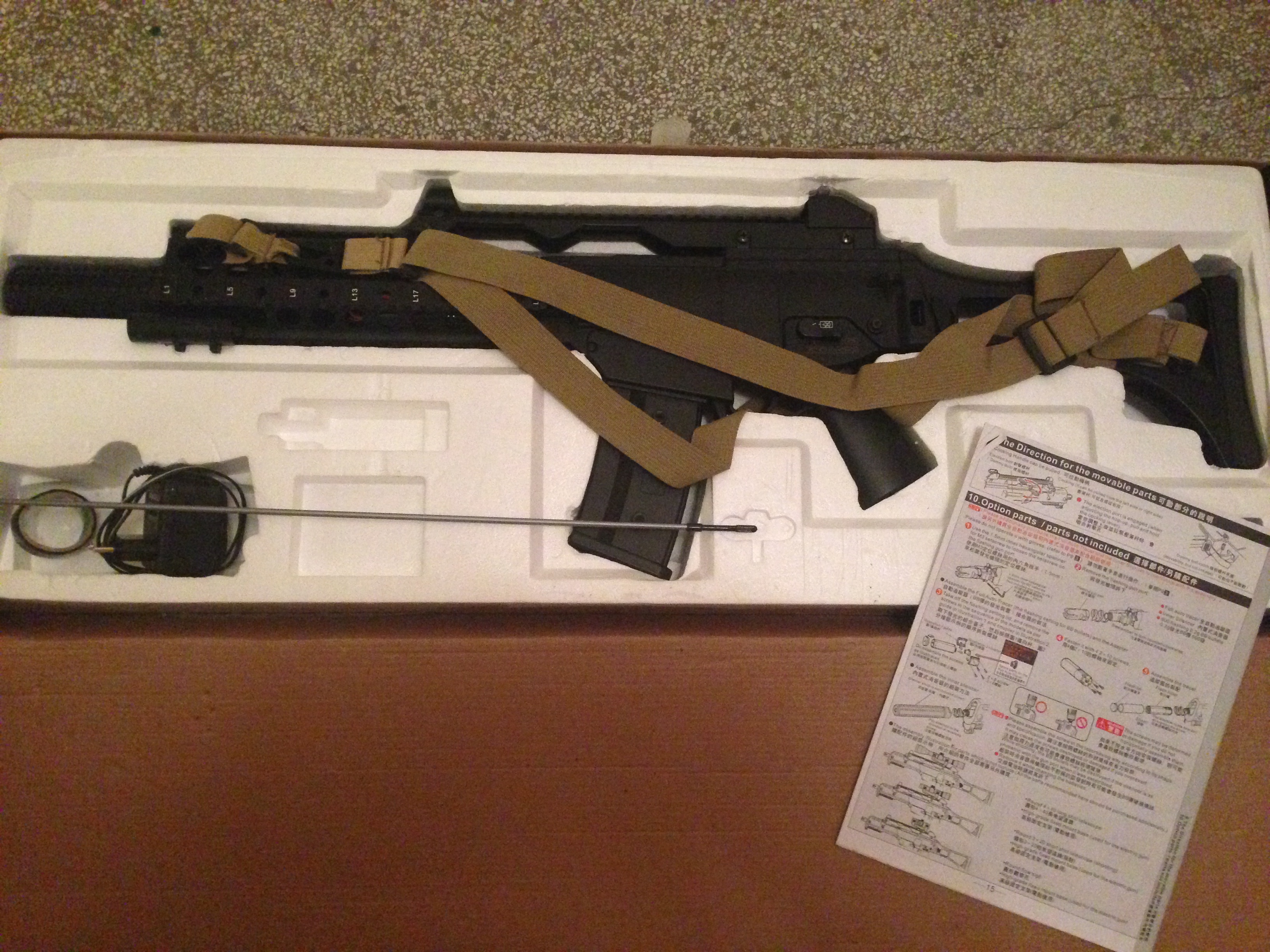 Airsoft карабината е малко използвана. подходяща за тренировки. Репликата е изработена от подсилен полимер (ABS). Цевта и RIS-а са направени от метал. Репликата има заглушител и лазерен прицел. Копчето за промяна на режима на стрелба е от двете страни, което прави оръжието удобно и за левичари. Гиърбоксът Ver.3 е направен по стандарт на Tokio Marui и може да се ъпгрейдва с части на по-голямата част от производители. Гиърите са подсилени. Начална скорост на BB с тегло 0.20г - 115 m/s. Репликата има регулируем хоп-ъп.