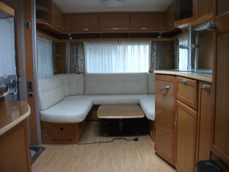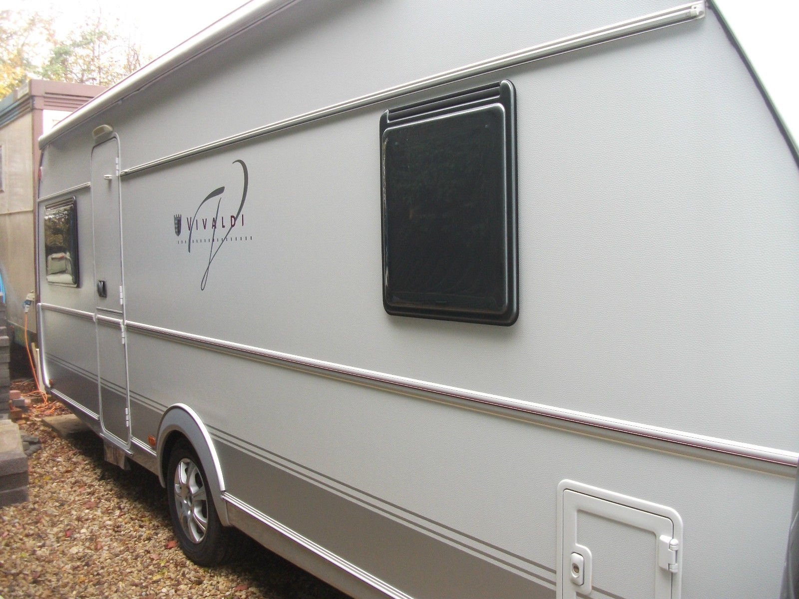 класическа бяла каравана, използвана, произведена преди четири години, могат да спат четири човека, всички екстри