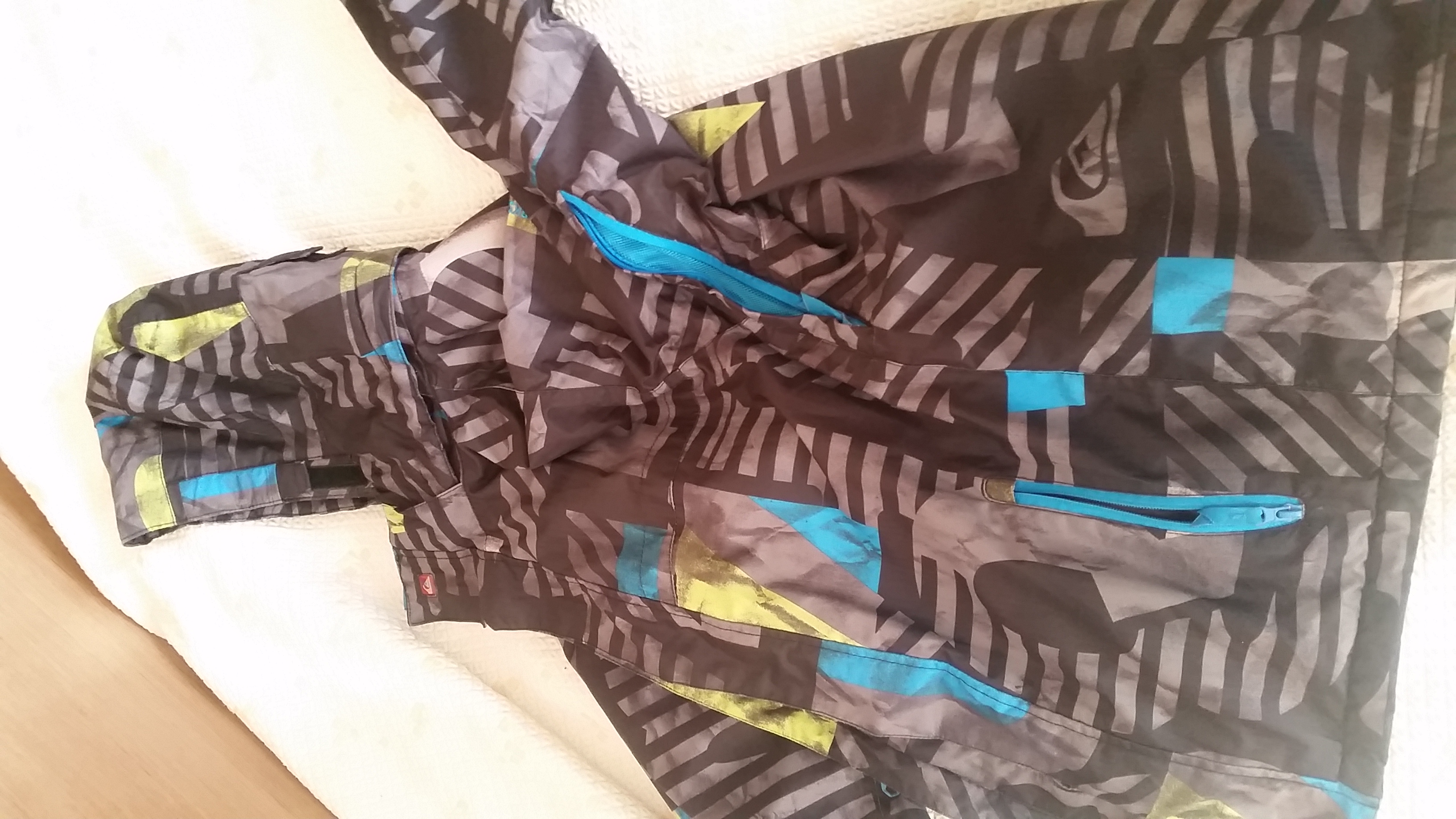 Детско зимно яке за ски или сноуборд. Подходящо за подрастващи на 14 годишна възраст. Два вътрешни джоба като един от които е пригоден за скиорска маска, джоб на ръкава пригоден за носене на карта за лифт + отвори под мишниците за проветрение. Якето е запазено и няма дефекти